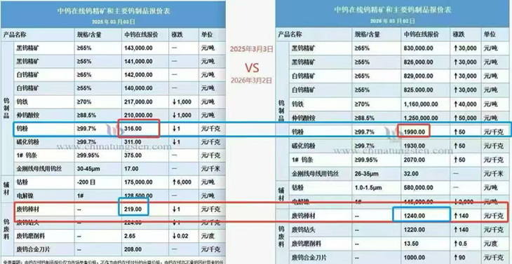 2025年钨精矿等价格普遍上涨,进入2026年,这股涨势依然没有停歇的迹象。